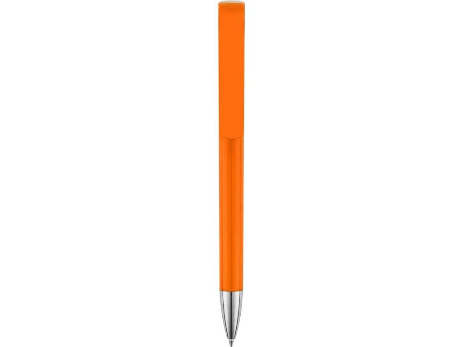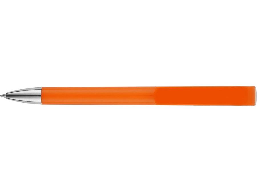 Пластиковая ручка с цветным корпусом и серебристым носиком привлечет внимание своим необычным дизайном: при нажатии на кнопку двигается только часть клипа, а вторая – остается на месте. Из шести расцветок можно выбрать ту, что наилучшим образом подойдет к вашим фирменным цветам.