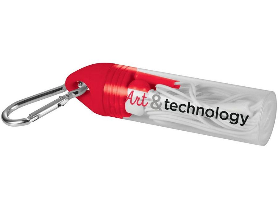 Наушники "Earbuds" включают в себя встроенный микрофон и регулятор громкости, которые позволяют принимать звонки и управлять музыкой. Длина кабеля 1,20м. Складываются в удобный пластиковый контейнер с карабином, на котором удобно делать нанесение.