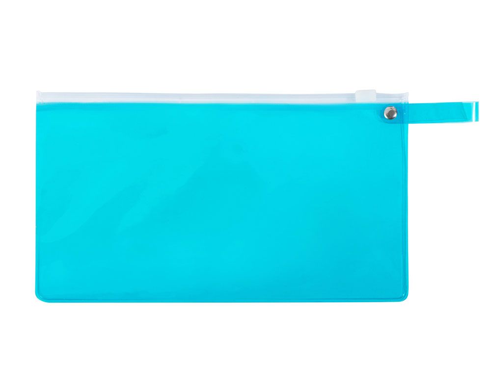 Яркий пенал из ПВХ закрывается на zip-замок. На этот пенал можно нанести название компании и вложить в него несколько сувениров небольшого размера.