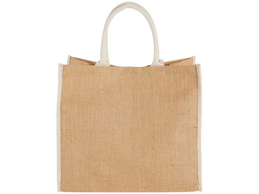Сумка для покупок. Открытое основное отделение на липучке. Двойные ручки высотой 17 см. Джут.