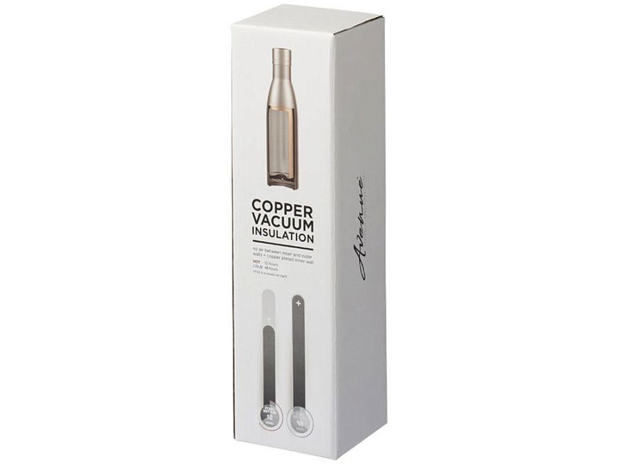 Вакуумная бутылка Vasa cохраняет Ваши напитки горячими в течение 20 часов или холодными в течение 48 часов благодаря двойным стенкам из нержавеющей стали класса 18/8 с вакуумной изоляцией и медным покрытием на внутренней стенке. Также особая конструкция с медной изоляцией не позволяет образовываться конденсату на внешней поверхности термобутылки.. Объем 500 мл. Упакована в коробку Avenue.