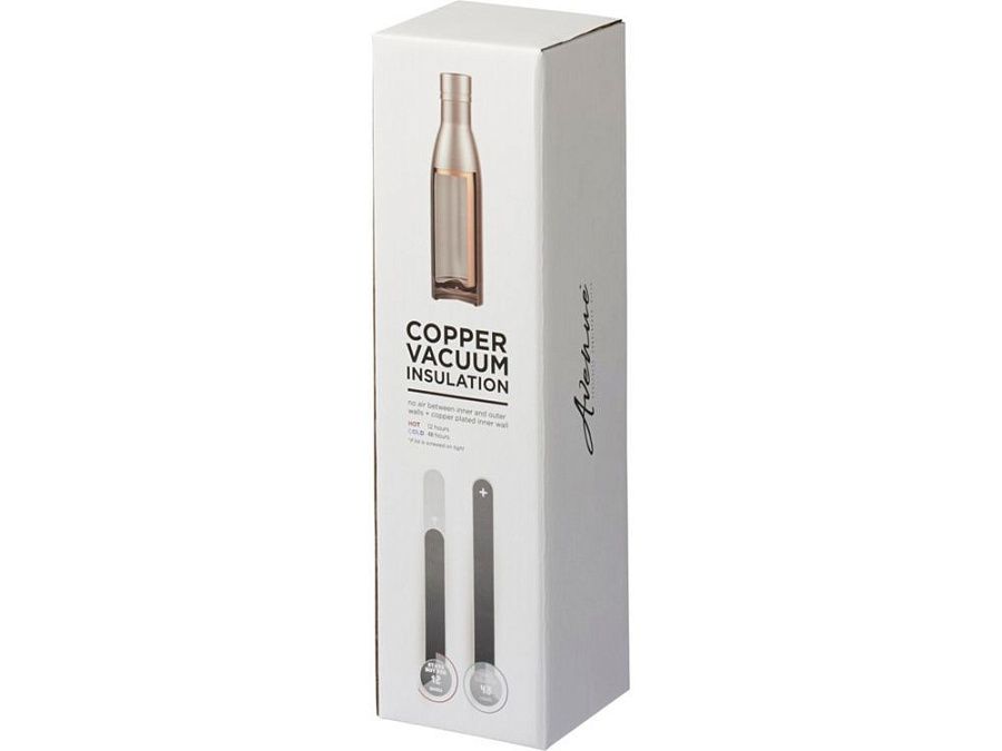 Вакуумная бутылка Vasa cохраняет Ваши напитки горячими в течение 20 часов или холодными в течение 48 часов благодаря двойным стенкам из нержавеющей стали класса 18/8 с вакуумной изоляцией и медным покрытием на внутренней стенке. Также особая конструкция с медной изоляцией не позволяет образовываться конденсату на внешней поверхности термобутылки.. Объем 500 мл. Упакована в коробку Avenue.