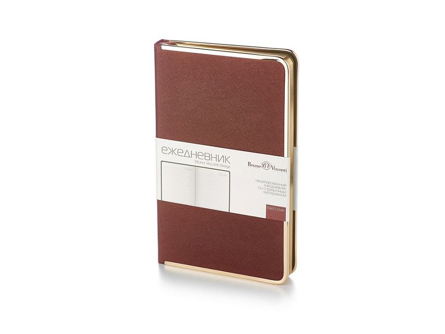 Недатированный ежедневник «Bridge» от бренда Bruno Visconti - это качественный корпоративный подарок по выгодной цене, произведенный специально под персонализацию. Представлен в универсальном формате А5. Ежедневник Bridge - воплощение классики, актуальной во все времена. Тисненый переплетный материал «под кожу» смотрится благородно и элегантно в дуэте со светлым металлическим кантом серебристого цвета. Его дополняет тонированный обрез блока. Солидный ежедневник Bridge в долговечном переплете – выбор деловых людей, ценящих проверенное качество.