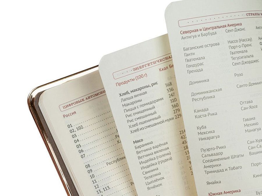 В ежедневнике «Chelsea» есть полезная справочная информация и телефонная книга, а также 272 страницы для записи идей, мыслей и составления рабочих планов. Есть закладка - тесьма из шелка, она интегрирована в обложку и может использоваться как хлястик. Для изготовления страниц используется качественный бежевый офсет повышенной плотности (70 г/кв м), которая производится в Японии и подходит для всех видов чернил. Бордовое ляссе, совпадающее по цвету с капталом, служит для удобного перехода к текущей дате.