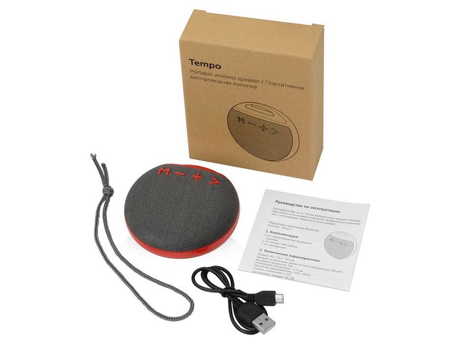 Если вы ищите надежную и стильную портативную колонку, закажите "Tempo"! Она выигрышно подчеркнет бренд компании с помощью таких методов, как термотрансфер, УФ-печать и тампопечать. У "Tempo" стильный дизайн, контрастный цвет кнопок и задней крышки, а также удобное крепление для переноски. Колонка обтянута акустической тканью, проигрывает музыку со стандартной USB флешки или micro SD карты. "Tempo" позволяет принимать звонки и имеет режим радио.