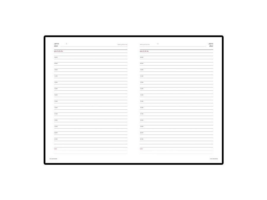 Две строчки на каждой странице отведены на ежедневное планирование. Есть почасовая разбивка страниц. Две последние строчки служат для комментариев. Строгий классический материал, прекрасная практичная альтернатива дорогостоящей натуральной коже. Идеально сочетается с тиснением фольгой.