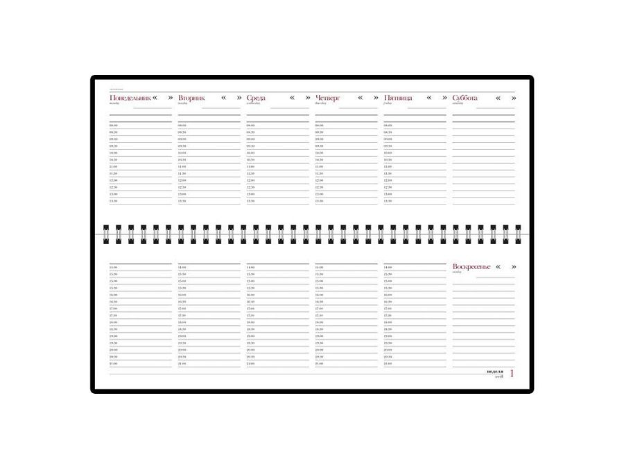 Недатированный планинг размером 305*130 мм состоит из 128 страниц с креплением на металлическом гребне. Используется высококачественная белая бумага плотностью 70 г/км. Полезная справочная информация на 14 страницах пригодится в бизнесе и повседневной жизни (телефонные коды России и мира, праздники, единицы измерения, таблицы размеров, часовых поясов и т.д.)