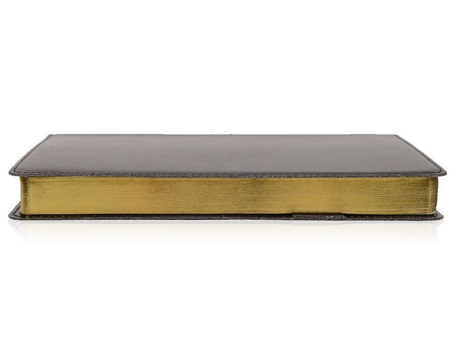 Их закругленные уголки совпадают с формой обложки, обрез золотого цвета. Используется бумага высшего качества с плотностью 70 грамм.