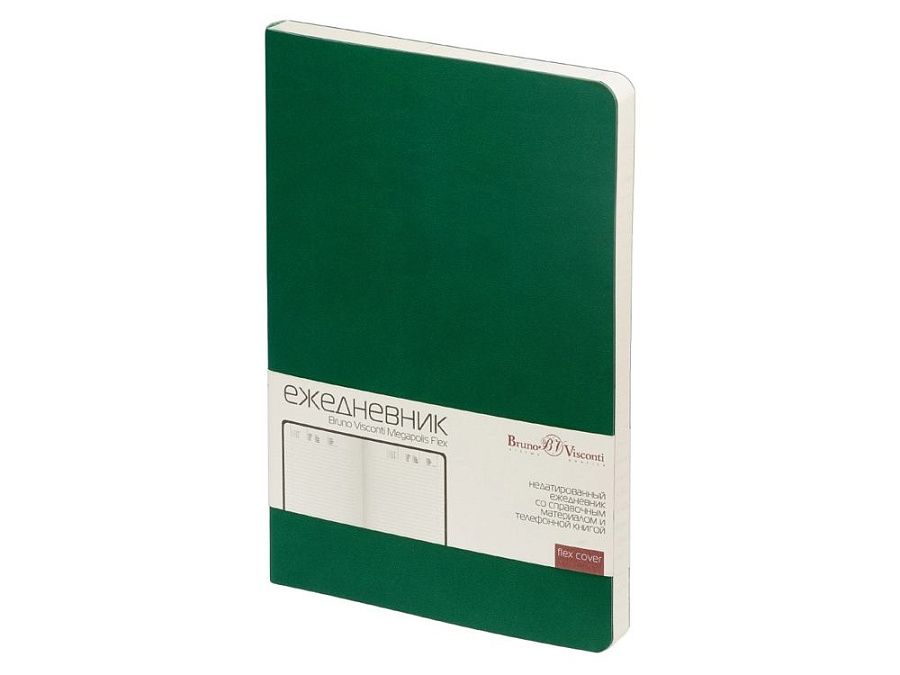 Недатированный ежедневник «Megapolis Flex» от бренда Bruno Visconti - это качественный корпоративный подарок по выгодной цене, произведенный специально под персонализацию. Представлен в универсальном формате А5 и состоит из 272 страниц. Элегантная закругленная flex обложка из гладкого кожзама имеет гибкую конструкцию и приятна на ощупь. А интегральный переплет позволяет сэкономить место в деловой сумке или портфеле – ежедневник можно просто свернуть в трубку или согнуть пополам.