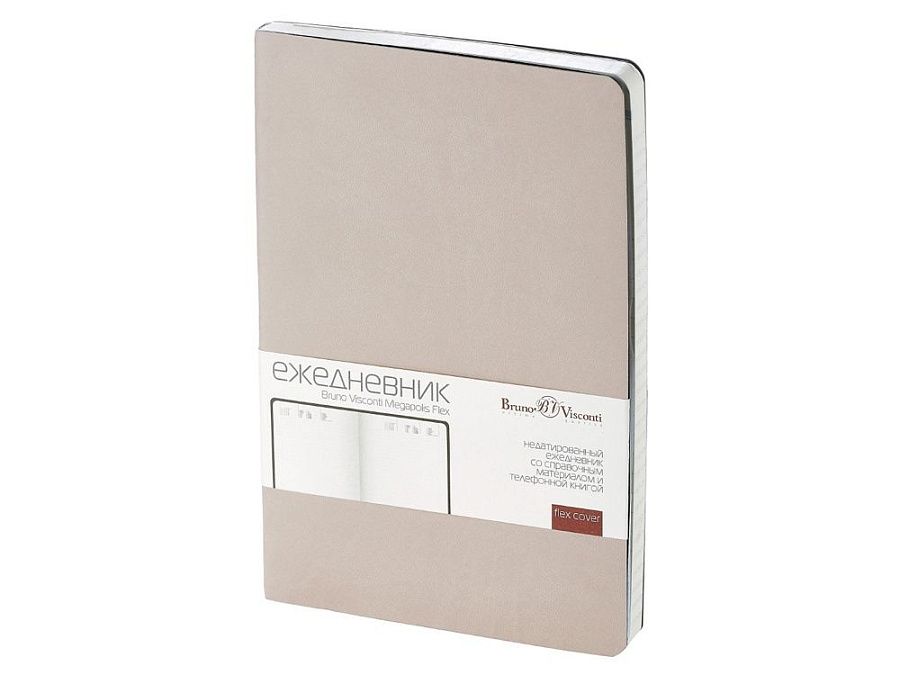 Недатированный ежедневник «Megapolis Flex» от бренда Bruno Visconti - это качественный корпоративный подарок по выгодной цене, произведенный специально под персонализацию. Представлен в универсальном формате А5 и состоит из 272 страниц. Элегантная закругленная flex обложка из гладкого кожзама имеет гибкую конструкцию и приятна на ощупь. А интегральный переплет позволяет сэкономить место в деловой сумке или портфеле – ежедневник можно просто свернуть в трубку или согнуть пополам.