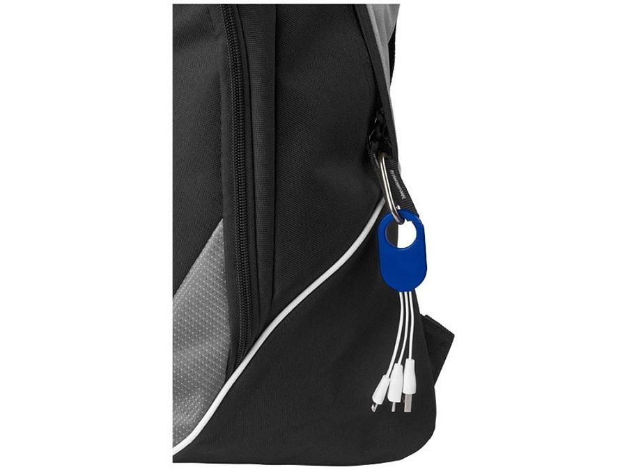 Кабель для зарядки «3-в-1». Кабель для зарядки Troop «3-в-1» с коннектором USB Type C и двойным совместимым коннектором «2-в-1» для устройств Apple® iOS и Android. Кабель оснащен карабином для удобного крепления к сумке. АБС-пластик.