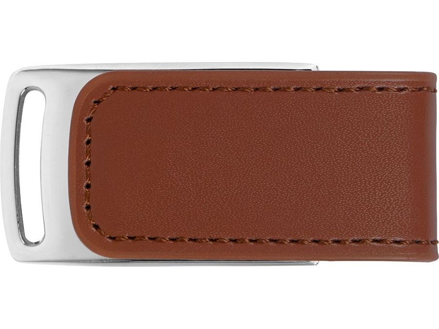 Стильная флешка в металлическом корпусе с кожаной вставкой. Магнитный замок и крепление для переноски.