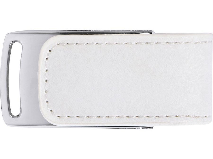 Стильная флешка в металлическом корпусе с кожаной вставкой. Магнитный замок и крепление для переноски.