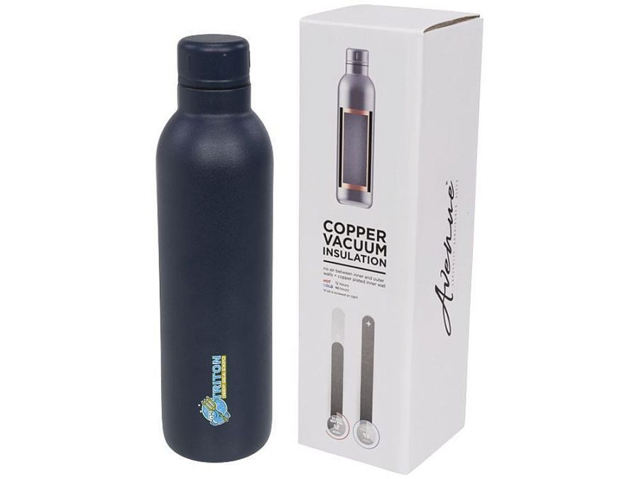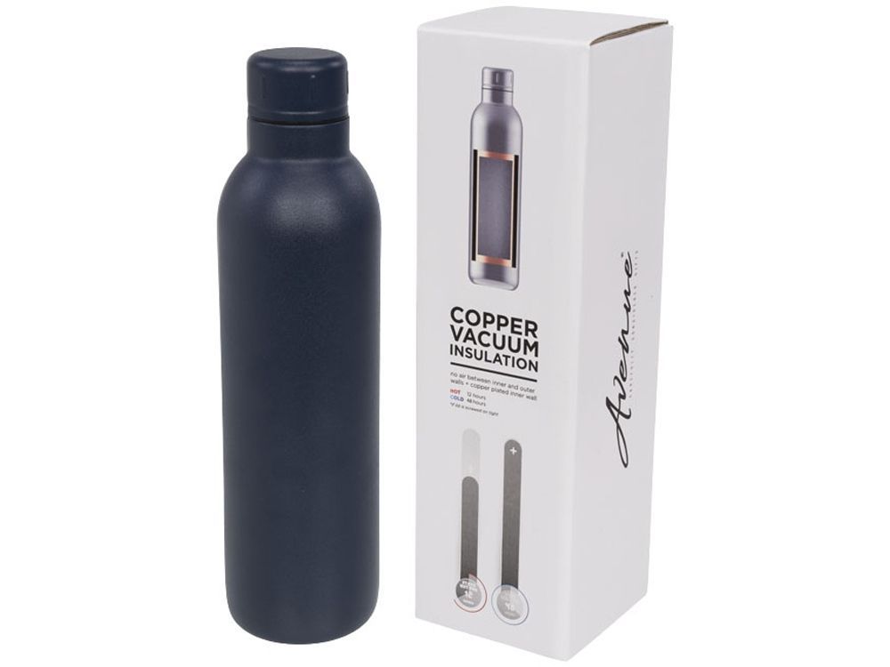 Спортивная бутылка Thor с вакуумной изоляцией объемом 510 мл. Прочная бутылка с двойными стенками из нержавеющей стали и вакуумной медной изоляцией сохраняет напитки холодными в течение 48 часов и горячими в течение не менее 12 часов. Конструкция бутылки предотвращает образование конденсата на внешней стороне. Модное, прочное порошковое покрытие. Герметичная завинчивающаяся крышка из нержавеющей стали. Объем – 510 мл. Предлагается в подарочной коробке Avenue. Нержавеющая сталь.