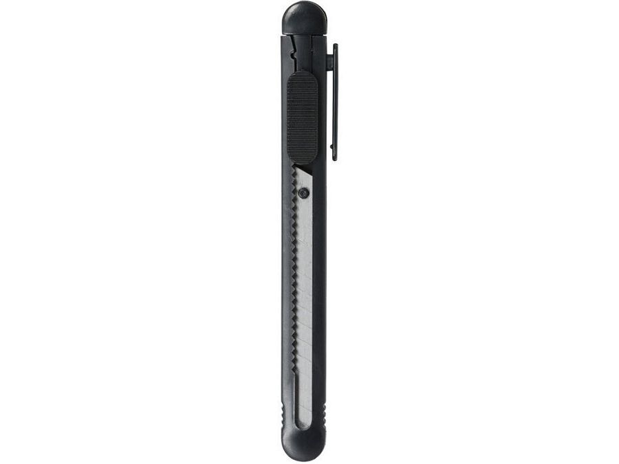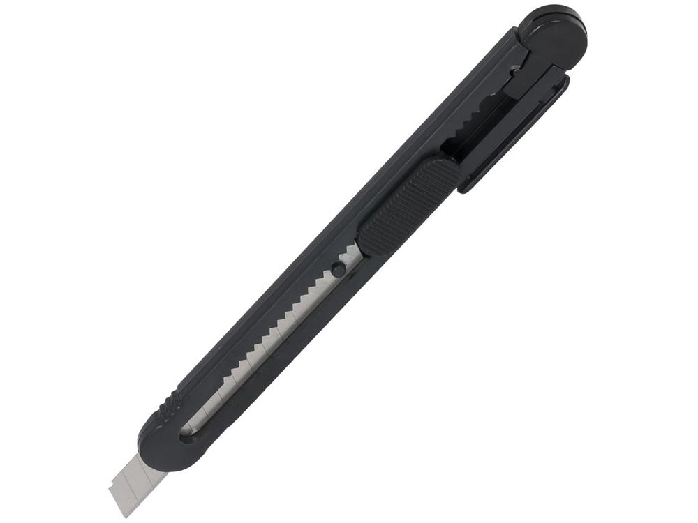 Универсальный нож с выдвижным сменным лезвием 80x9 мм, с 12 сегментами. Встроенный инструмент для замены лезвия и зажим для крепления к карману. ПС-пластик.