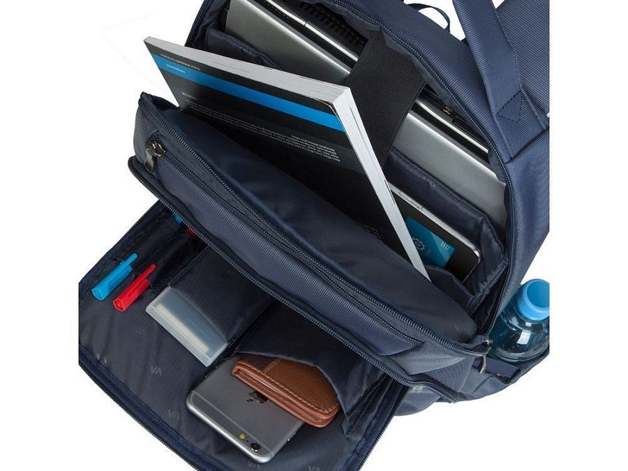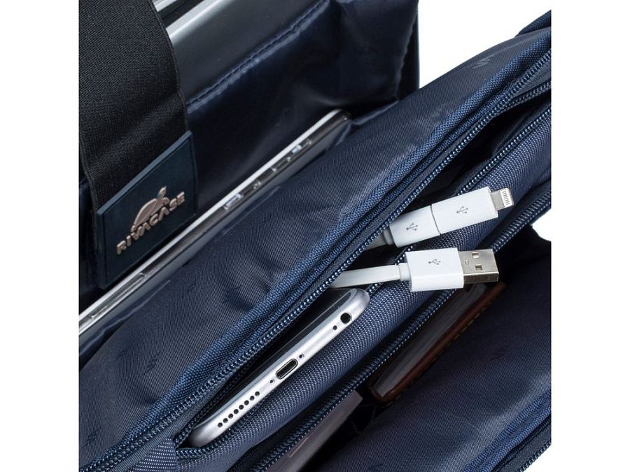 • Передний карман на молнии для хранения аксессуаров, зарядного устройства, также оборудован панелью-органайзером для хранения визитных карт, авторучек, смартфона.