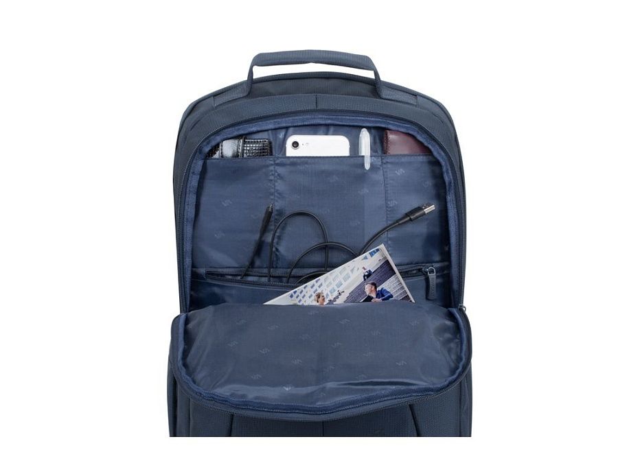 • Два внешних передних кармана на молнии. Один для хранения аксессуаров, зарядного устройства. Второй оборудован панелью-органайзером для хранения визитных карт, авторучек, смартфона.