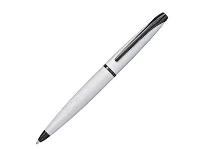 Шариковая ручка Cross ATX Brushed Chrome с гравировкой, полированным покрытием черного цвета и поворотным механизмом.
