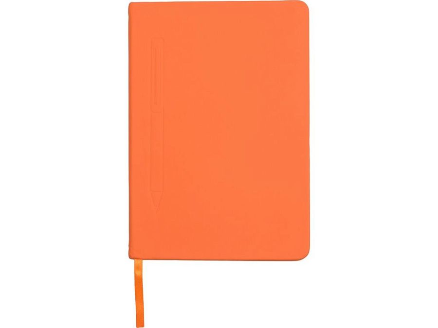 Блокнот формата А5 в твердой обложке со скруглёнными углами и блоком в линейку на 80 листов. Благодаря скрытой магнитной ленте на блокноте можно легко и надежно закрепить металлическую ручку. Зона с магнитом обозначена тиснением в форме ручки.