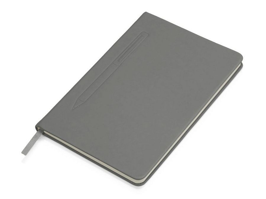 Блокнот формата А5 в твердой обложке со скруглёнными углами и блоком в линейку на 80 листов. Благодаря скрытой магнитной ленте на блокноте можно легко и надежно закрепить металлическую ручку. Зона с магнитом обозначена тиснением в форме ручки.