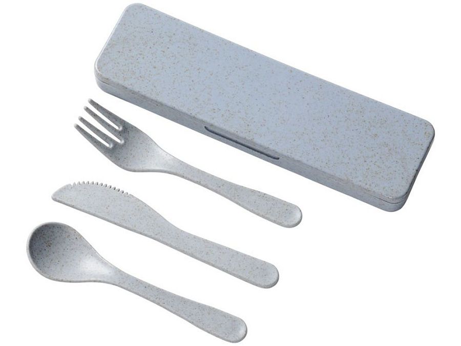 Набор столовых приборов Bamberg состоит из вилки, ножа и ложки. Они хранятся в удобном боксе, выполненном в едином стиле и цвете. Все приборы изготовлены на 50 % из бамбукового волокна и на 50 % - из полипропилена. Этот компактный и стильный набор удобно брать с собой на работу, в путешествие или на пикник.
