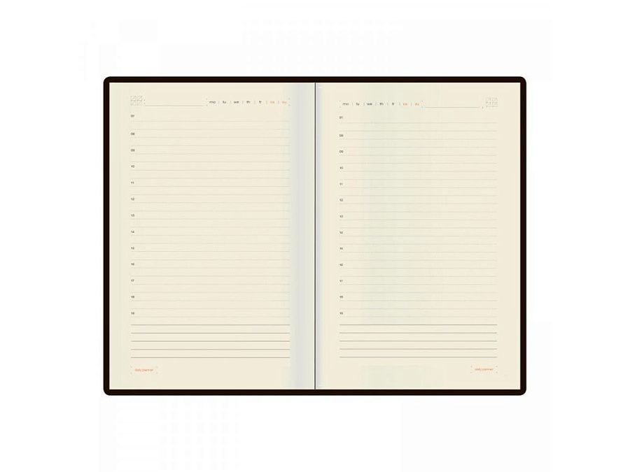 Для удобства ведения записей раздел для планирования имеет линовку с указанием времени (интервал в час) и дополнительным полем для заметок внизу каждой страницы.