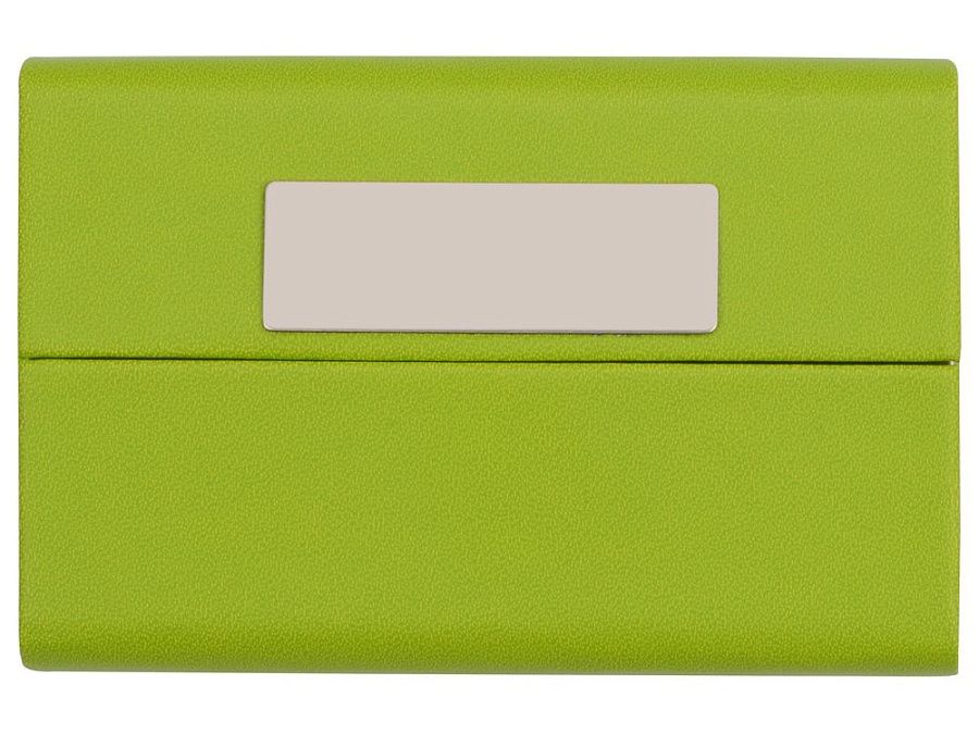 Компактная и легкая визитница выполнена в сочных цветах. Логотип можно нанести на металлическом шильде или на поверхности из искусственной кожи. Вмещает примерно 20 визиток.
