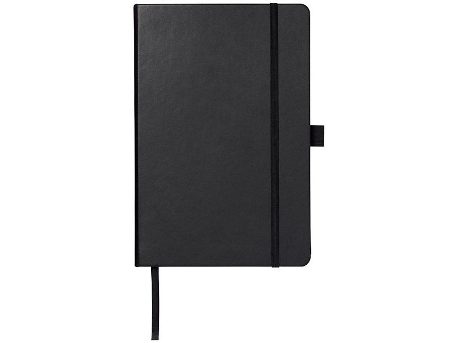 Записная книжка Nova формата A5 с переплетом. Записная книжка из искусственной кожи формата A5 (14,2 x 21,4 см) с резинкой, лентой-закладкой, петлей для ручки и задним карманом. Состоит из 96 листов линованной бумаги кремового цвета плотностью 80 г/м2 и поставляется в белом футляре Journalbook. Бумага, имитирующая кожу.