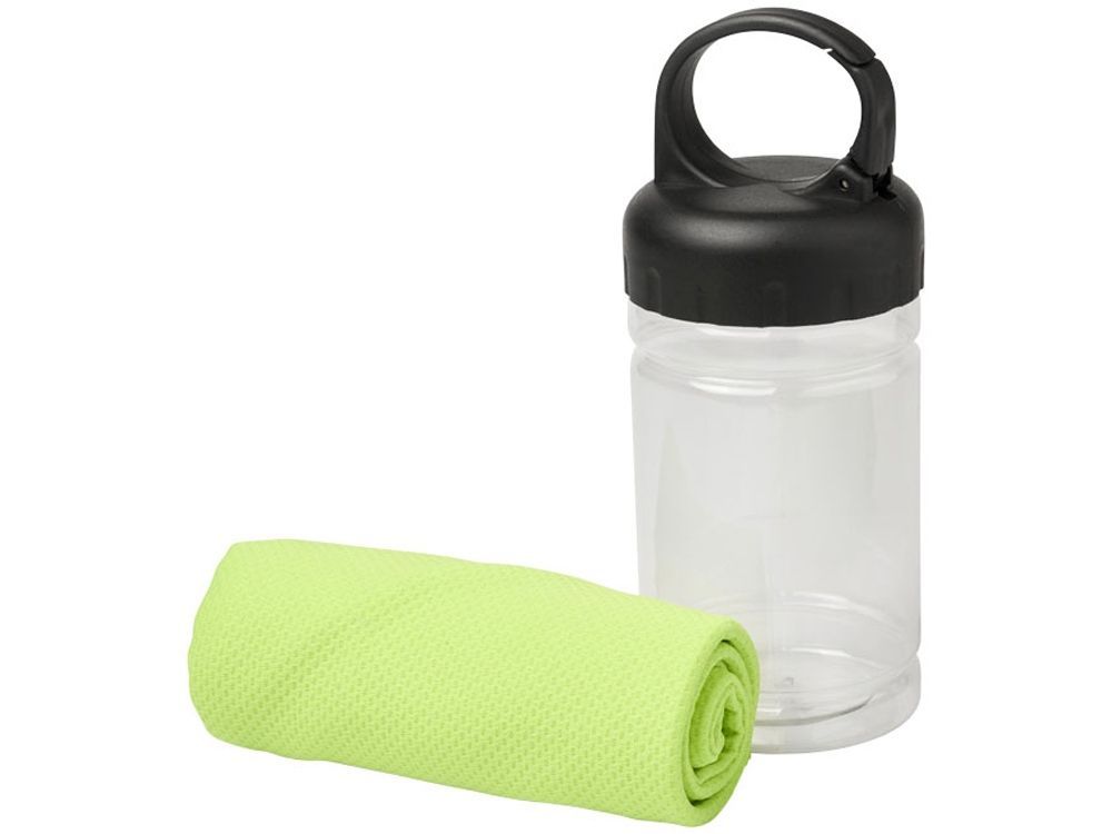 Охлаждающее полотенце Remy в ПЭТ-контейнере. Быстро впитывающее, быстро сохнущее и стираемое охлаждающее полотенце сохраняет прохладу во время тренировок или любых других занятий на свежем воздухе. Поставляется в ПЭТ-контейнере с ручкой и встроенным карабином для удобной переноски. Доступно в 5 ярких цветах. На контейнере изображен большой логотип, он также может быть и на самом охлаждающем полотенце. Размер: 30 x 80 см. PET. 0,096.
