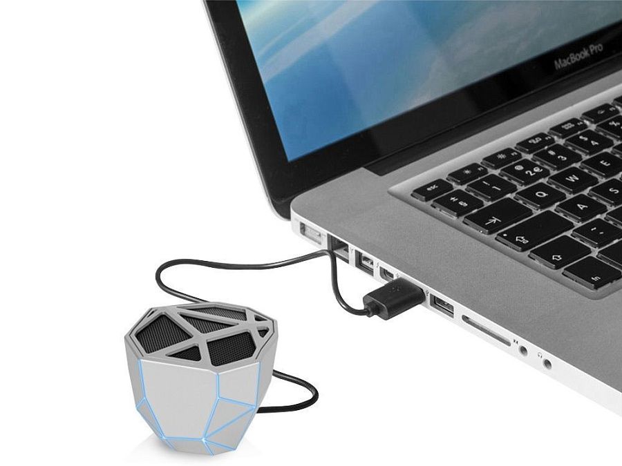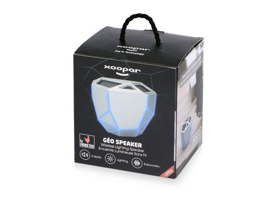 Беспроводной портативный динамик «Geo» — ультрасовременное решение для прослушивания аудио с функцией расширенных басов. Дизайн колонки выполнен в стиле low-poly, главная особенность которого — необычная геометрия форм. Визуальный эффект усиливается одноцветной подсветкой колонки, яркость которой меняется в зависимости от интенсивности звука.