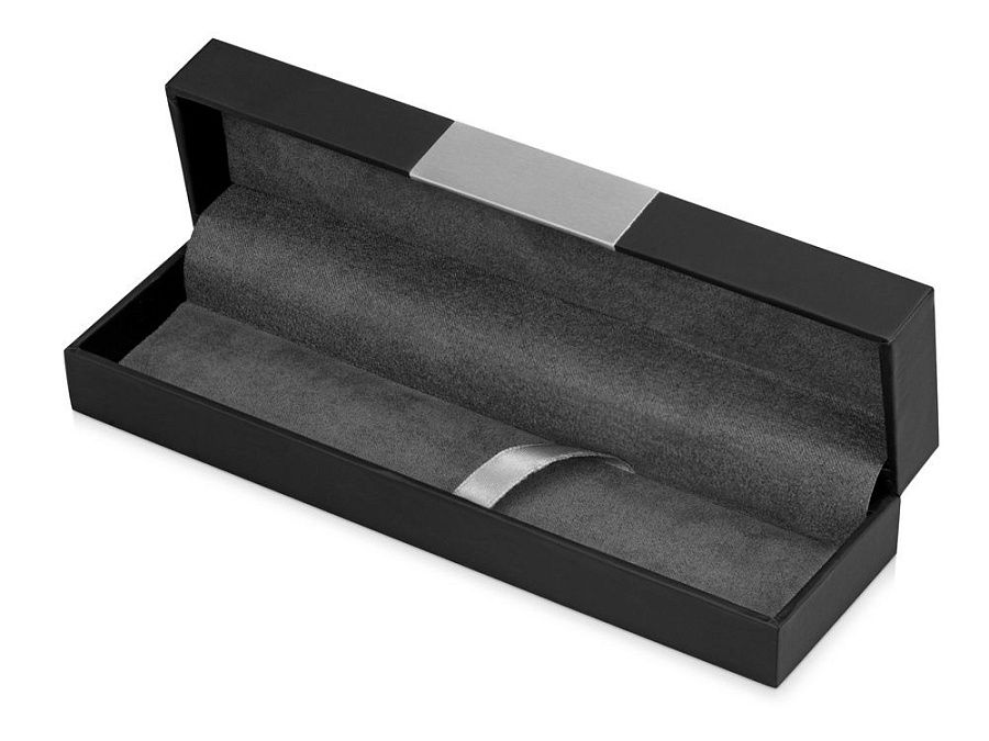 Футляр для ручки изготовлен из прочного картона с матовым покрытием, имитирующим кожу. Декоративная серебристая вставка придаёт футляру премиальный вид. Внутренняя часть отделана велюром, на котором ручка фиксируется при помощи атласной ленты.