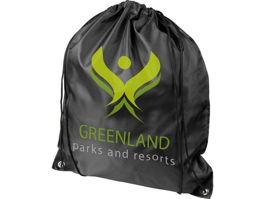Рюкзак со шнурком Oriole из переработанного ПЭТ. Прочный рюкзак, изготовленный на 100 % из переработанного пластика, предназначенного для повторного использования, что способствует уменьшению количества пластиковых отходов. Большое основное отделение затягивается на шнурок черного цвета. Вместимость: 9 литров, прочность до 5 кг. Переработанный ПЭТ 190Т.