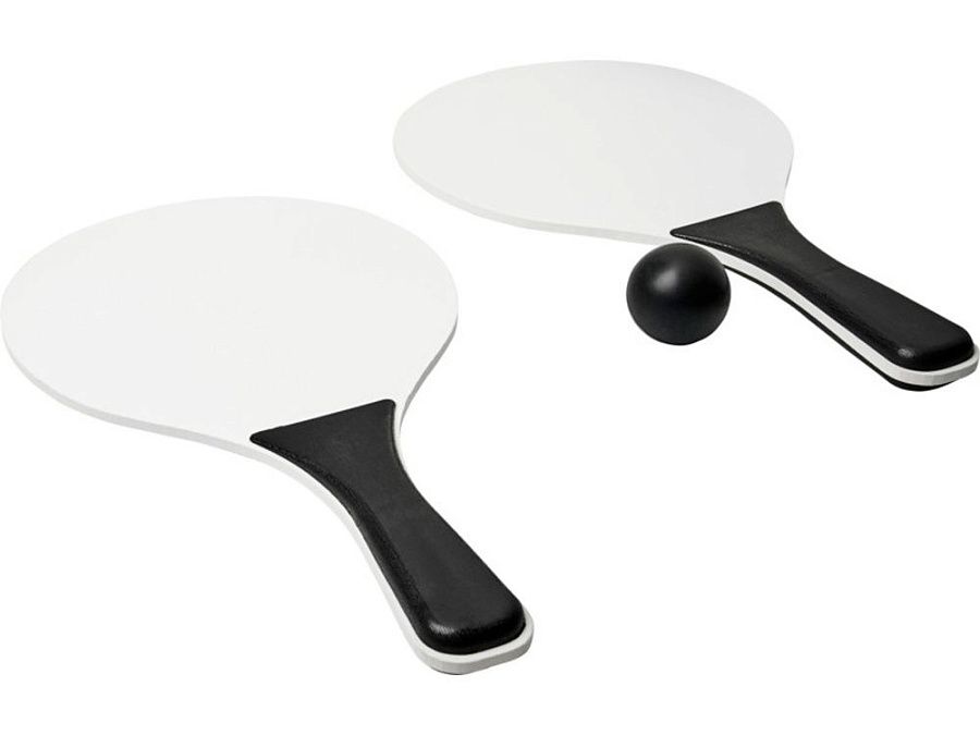 Набор для пляжных игр Bounce. С этим набором пляжных игр, предлагаемым в широкой цветовой гамме, всегда весело. Этот прочный набор пляжных игр изготовлен из дерева МДФ с цветной ручкой из полипропилена. Упаковано вместе с мягким шариком одного цвета в сетчатую упаковку, что позволяет провести веселый день на пляже. МДФ.