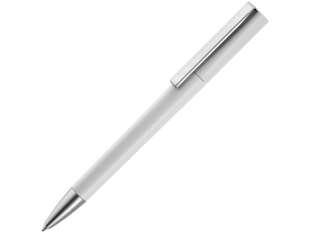 Шариковая ручка с поворотным механизмом, тонированным корпусом, тяжелым металлическим наконечником и металлическим клипом с матовой хромированной отделкой.