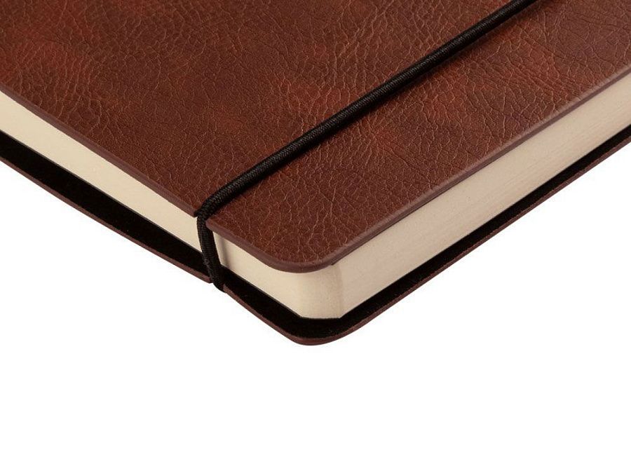 Отличительной особенностью ежедневника является горизонтальная, скрепляющая обложку и блок, тоненькая резинка. Оригинальное решение позволяет раскрывать ежедневник на 180 градусов и вести записи у самого края корешка. Для фиксации второй резинки, не позволяющей ежедневнику раскрываться, предусмотрена выемка на обложке. Обложка тонка, но фактурность придает ей элемент брутальности, а бархатистое нанесение на ее оборотной стороне- благородство и статусность. Картонный карман для визиток, записок, бумаг – функциональная деталь и приятная дополнительная опция. Бумажный блок изготовлен из бумаги бежевого цвета, плотностью 70 г/кв.м и содержит 272 страницы, 23 из которых справочная информация.