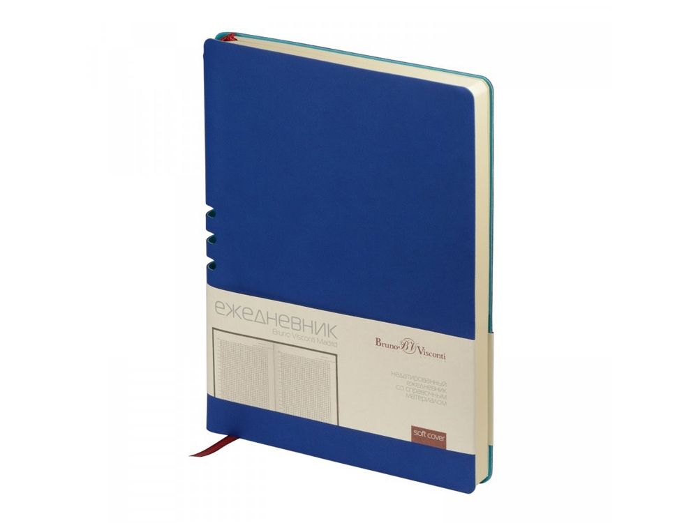 Этот ежедневник вдохновлен солнечными днями и томными ночами Мадрида. И как этот великий город он лишь намекает снаружи на свои тайны. Так, вырубка на спинке – это удобная петля для ручки. Пользоваться этим секретом – одно удовольствие. Недатированный ежедневник Madrid от Bruno Visconti исполнен в благородном темно-синем цвете. Гибкая обложка с покрытием Soft-Touch. Бордовое ляссе выгодно прекрасно сочетается со скругленной обложкой и бежевым блоком. Для изготовления данного ежедневника использована бумага плотность 70 г/м. Справочная информация на 17 страницах. Ежедневник упакован в картонный полукороб и термопленку.