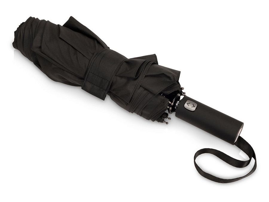 Купол этого складного зонта-автомата состоит из двух полотен и имеет большой диаметр 127 см. Прочный каркас и спицы из стекловолокна устоят при порывах ветра. Благодаря этому зонт служит надежным укрытием в самый сильный дождь. Закрывается в 3 сложения. Ручка обработана мягким покрытием soft-touch. Широкий хлястик для удобства персонализации.
