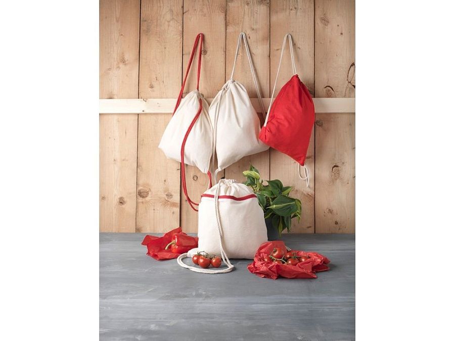Большое основное отделение затягивается хлопковым шнурком. Прочность до 5 кг.