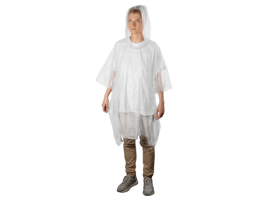 Дождевик отличное решение для мероприятий на открытом воздухе. Дождевик - пончо с капюшоном универсального размера выполнен из полиэтилена низкого давления. Поставляется в прозрачном пакете.