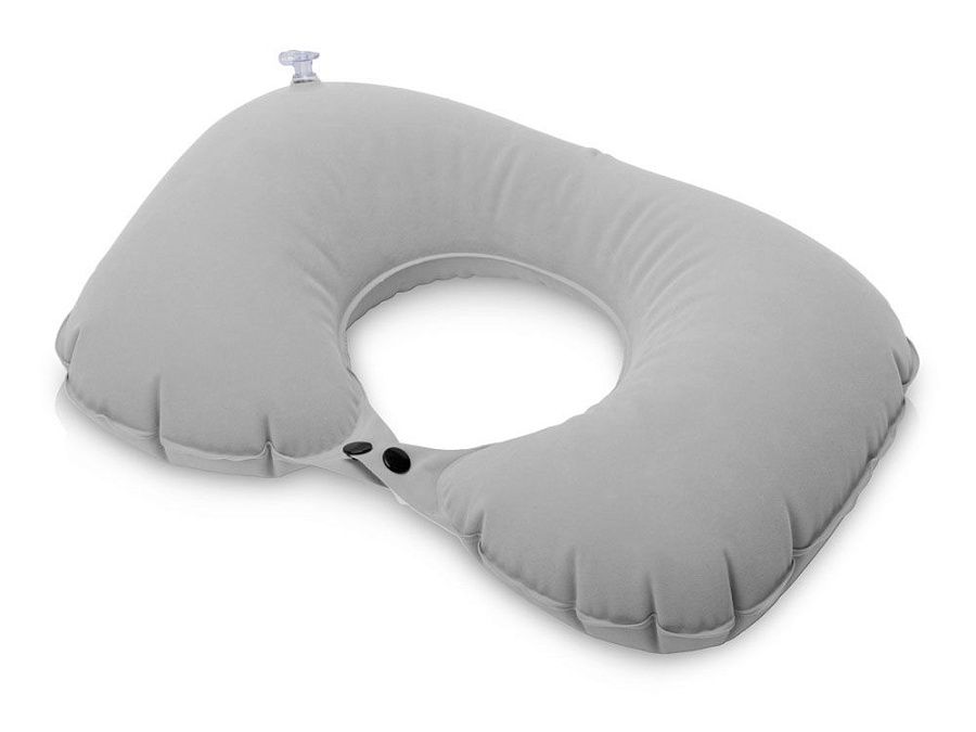 На обратной стороне от насоса-помпы находится клапан для сдувания воздуха из подушки. Двухуровневая фиксация кнопками позволит выбрать наиболее комфортное положение на шее. В комплекте идет чехол на завязках для хранения и удобной транспортировки.