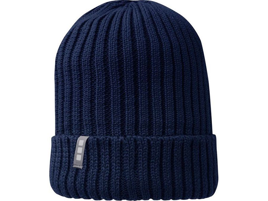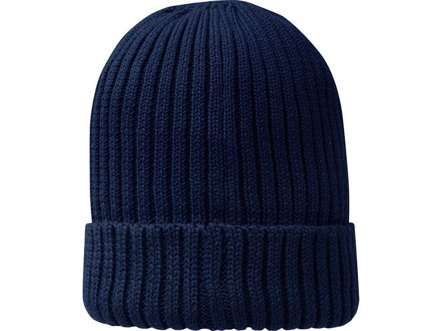 Экологически безопасный рекламный головной убор. Однослойная шапка с двойным отворотом связана рибом 2х2 7 класса из 100% органического хлопка. Фирменная этикетка в виде петли.