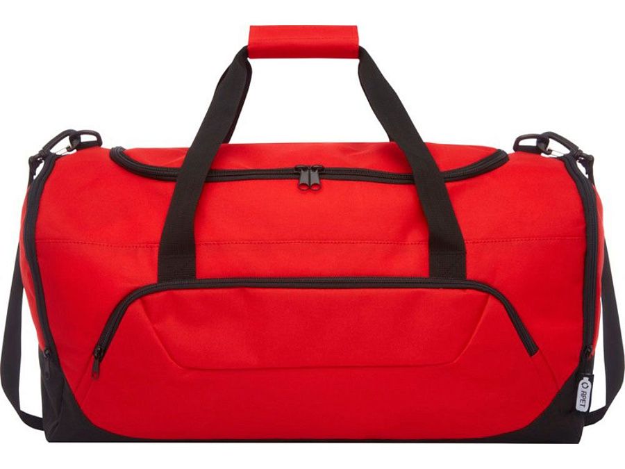 Прочная спортивная сумка, изготовленная на 100% из переработанного пластика, предназначенного для повторного использования, что способствует снижению количества пластиковых отходов. С большим основным отделением и передним карманом на молнии, мягким плечевым ремнем и мягкими ручками. Для изготовления этой сумки было переработано около 27 бутылок. 600D Полиэстер.
