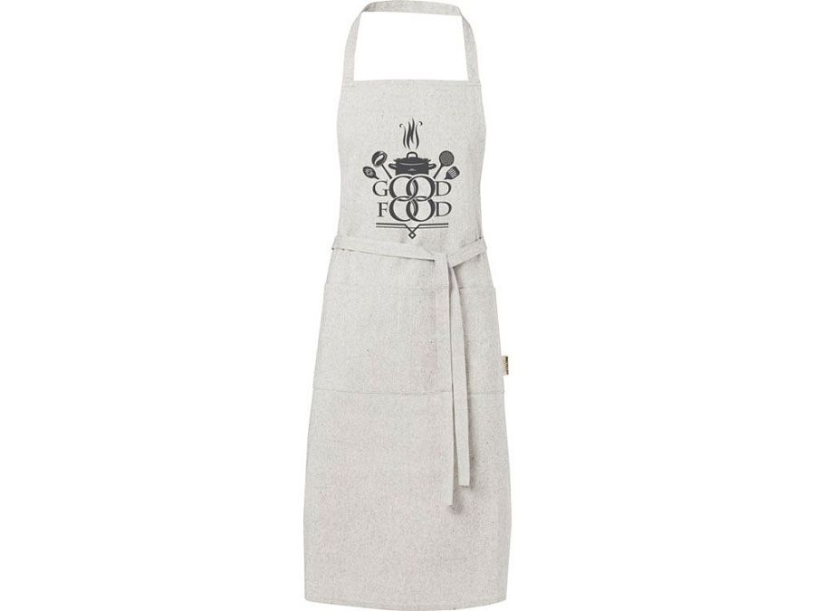 Фартук из смеси переработанного хлопка и полиэстера плотностью 200 г/м². Имеет два смежных кармана общим размером 45 x 20 см и завязку на спине длиной 1 метр. Вторичный хлопок изготавливается из отходов, предназначенных для потребления, которые производятся текстильными фабриками в процессе резки. Из-за особенностей переработанного хлопка возможно незначительное несоответствие цвета. Благодаря этому внешний вид выглядит более аутентичным. Длина шейного ремешка: 55 см. 100% переработанный хлопок, 200 g/m2, 100% переработанный полиэстер.