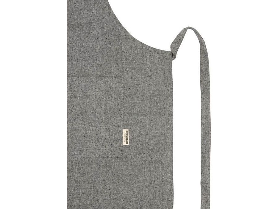 Фартук из смеси переработанного хлопка и полиэстера плотностью 200 г/м². Имеет два смежных кармана общим размером 45 x 20 см и завязку на спине длиной 1 метр. Вторичный хлопок изготавливается из отходов, предназначенных для потребления, которые производятся текстильными фабриками в процессе резки. Из-за особенностей переработанного хлопка возможно незначительное несоответствие цвета. Благодаря этому внешний вид выглядит более аутентичным. Длина шейного ремешка: 55 см. 100% переработанный хлопок, 200 g/m2, 100% переработанный полиэстер.