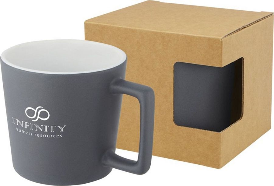 Керамическая кружка с современным дизайном и матовой отделкой. Объем 370 мл. Можно мыть в посудомоечной машине. Поставляется в упаковочной коробке из переработанного картона. Керамика.