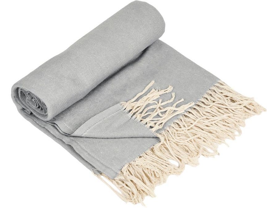 Плотный мягкий плед из натурального хлопка украшен бахромой. Можно использовать как теплое одеяло или как покрывало для украшения интерьера.