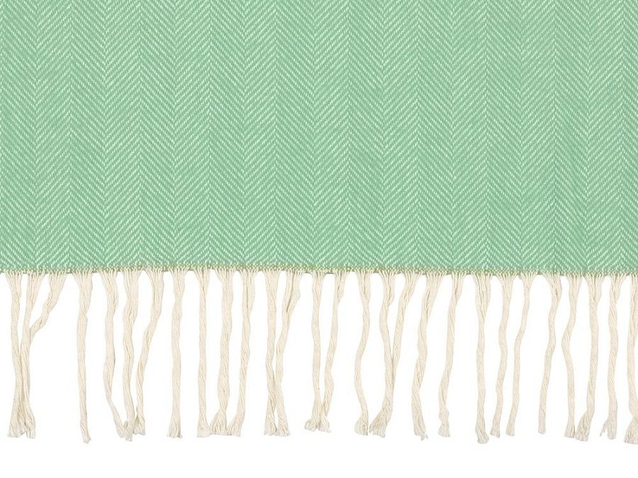 Плотный мягкий плед из натурального хлопка украшен бахромой. Можно использовать как теплое одеяло или как покрывало для украшения интерьера.