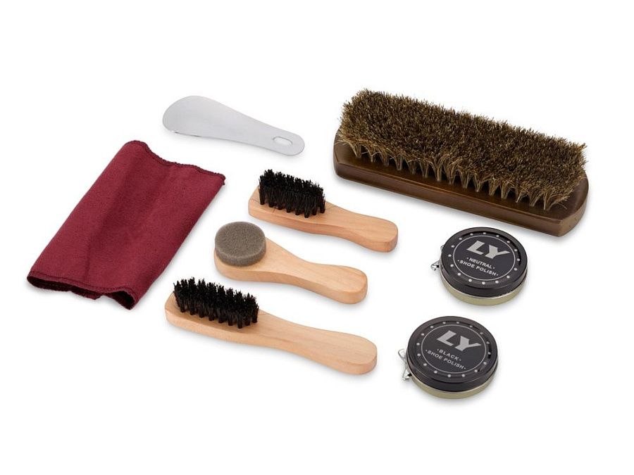 Настоящий сундучок из коричневого кожзама содержит целую кладезь полезных аксессуаров для чистки обуви. Набор не занимает много места при хранении и всегда готов прийти на помощь в поддержании чистоты вашей обуви. В набор входит 8 предметов. На футляр можно нанести логотип.