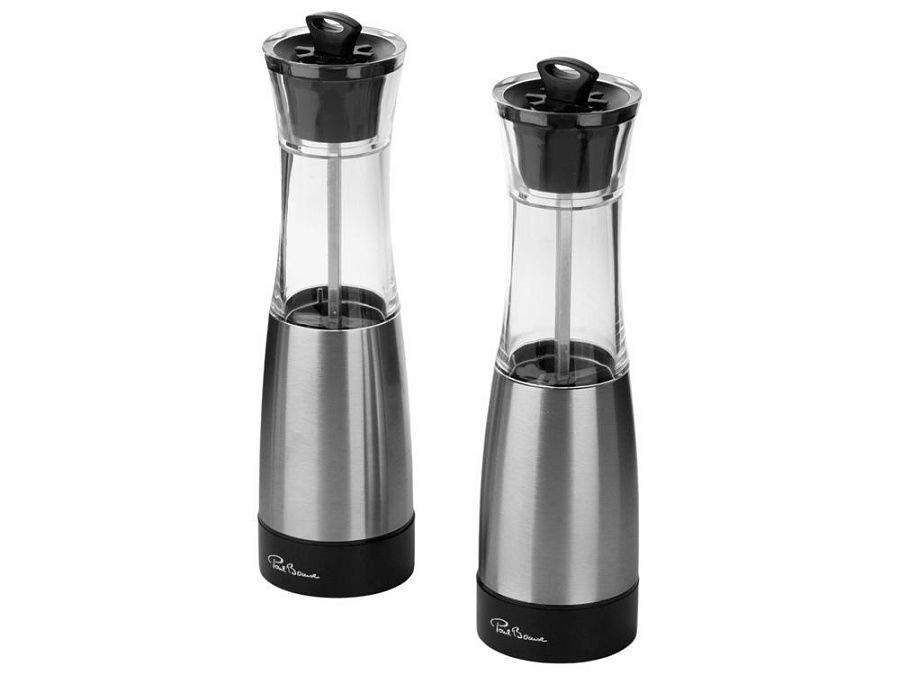 В комплект входят две мельницы, оснащенные высококачественным керамическим механизмом, который обеспечивает равномерное и эффективное измельчение специй. Приводятся в действие вручную, что позволяет легко контролировать степень помола. Изготовлены из прочной нержавеющей стали с элементами прозрачного акрила, что придаёт набору современный и элегантный вид.