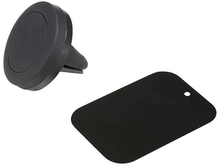 Магнитный держатель для телефона. Этот магнитный держатель для телефона полезен для использования в автомобиле. Он превосходно удерживает телефон во время вождения. Держатель состоит из 2 частей: металлической пластины и держателя телефона. В держателе для телефона есть 4 встроенных магнита, и его можно легко прикрепить к вентиляционной решетке вашего автомобиля. Металлическую пластину можно прикрепить к задней стороне смартфона или крышке телефона. Размер металлической пластины – 6,5 х 4,5 см. АБС-пластик и силикон.